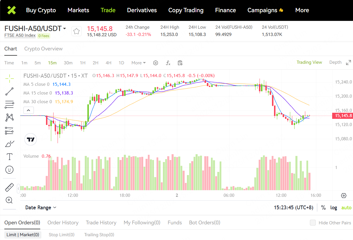 On October 7th at 9:00 AM Singapore time, XT introduced the FTSE China A50 ETF (FUSHI-A50) spot trading (FUSHI-A50 USDT) service, with zero transaction fees. This service is designed to help users seize the growth opportunities and potential of the Chinese market.