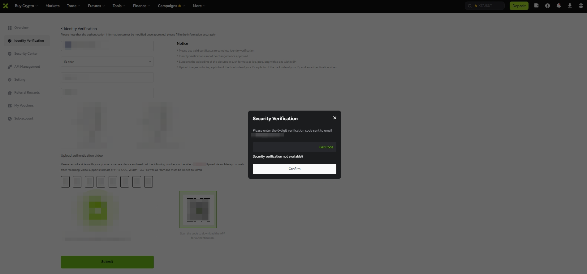 Next you will see the KYC Verification page. Your information will undergo review at this time. XT will finish the verification process within 2 days.