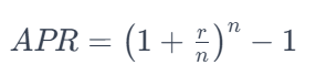 فرمول محاسبه APR بر اساس نرخ سود اسمی و تعداد دفعات ترکیب سود تعیین می شود: