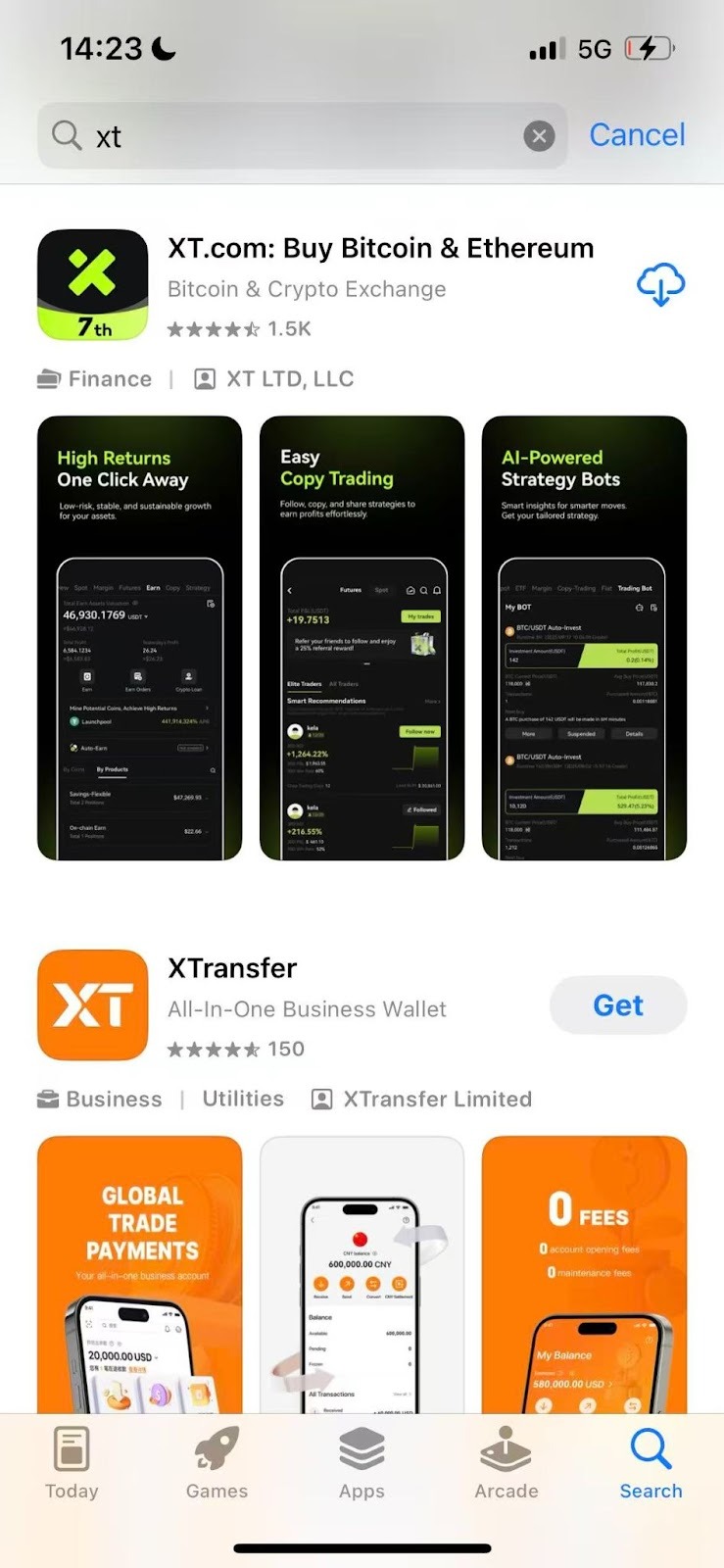 1. پس از ورود، به App Store مربوط به منطقه Apple ID شما هدایت خواهید شد. در App Store عبارت «XT» را جستجو کرده و برای شروع نصب، روی دکمه «GET» کلیک کنید.