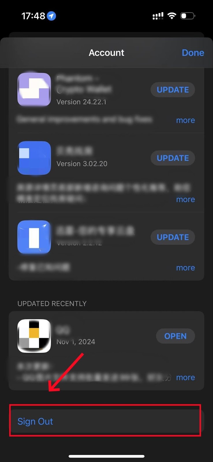 1. روی «خروج از حساب» (Sign Out) کلیک کنید، سپس دوباره با Apple ID و رمز عبور خارجی خود وارد شوید.