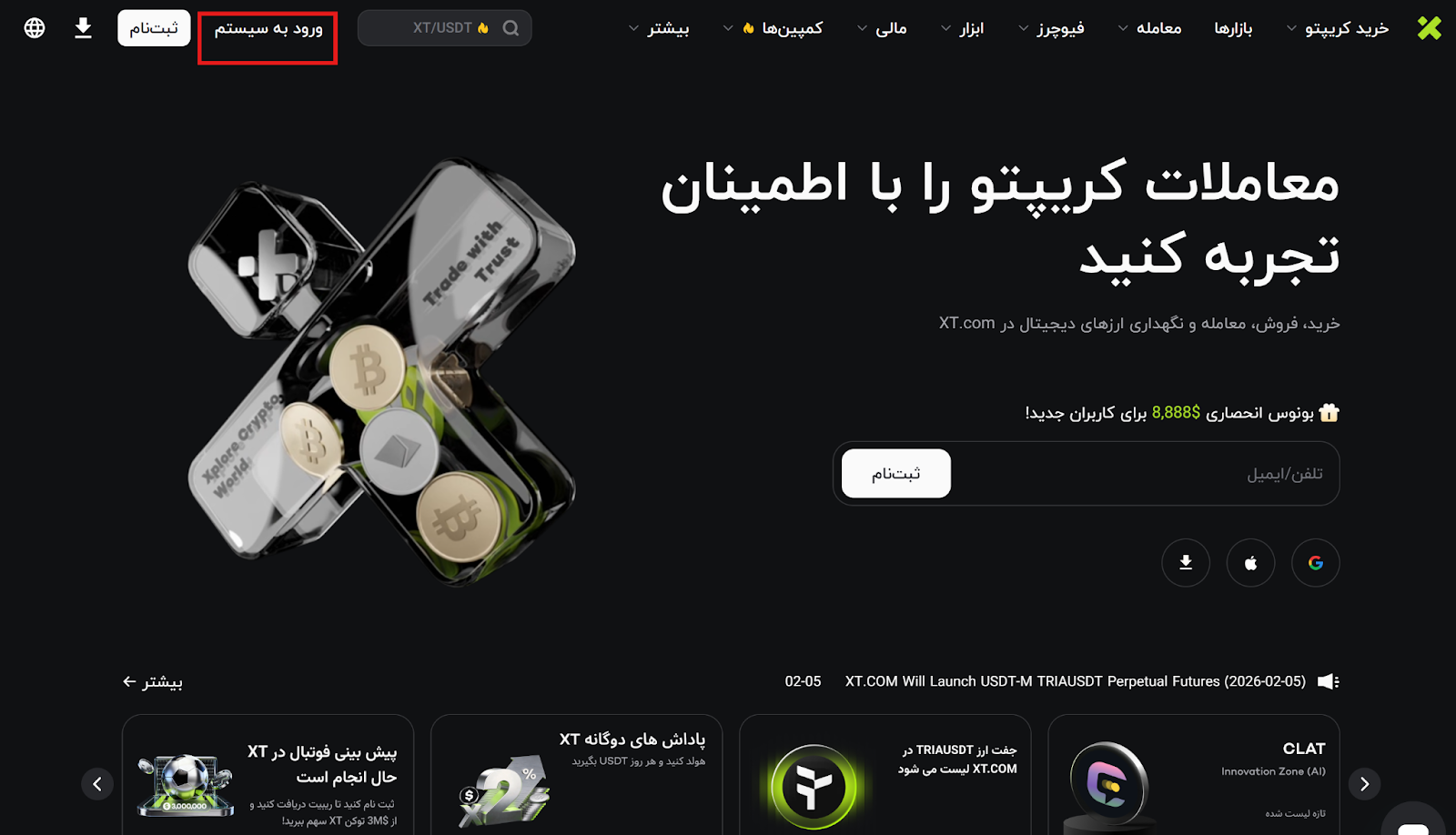 مرحله ۱: وارد حساب کاربری خود در XT.com شوید.