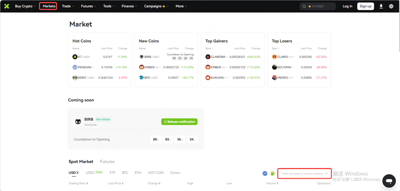 مرحله ۲: وارد بخش بازارها شوید، روی نام توکن کلیک کنید یا آن را جستجو نمایید؛ سپس به رابط معاملات اسپات هدایت خواهید شد.