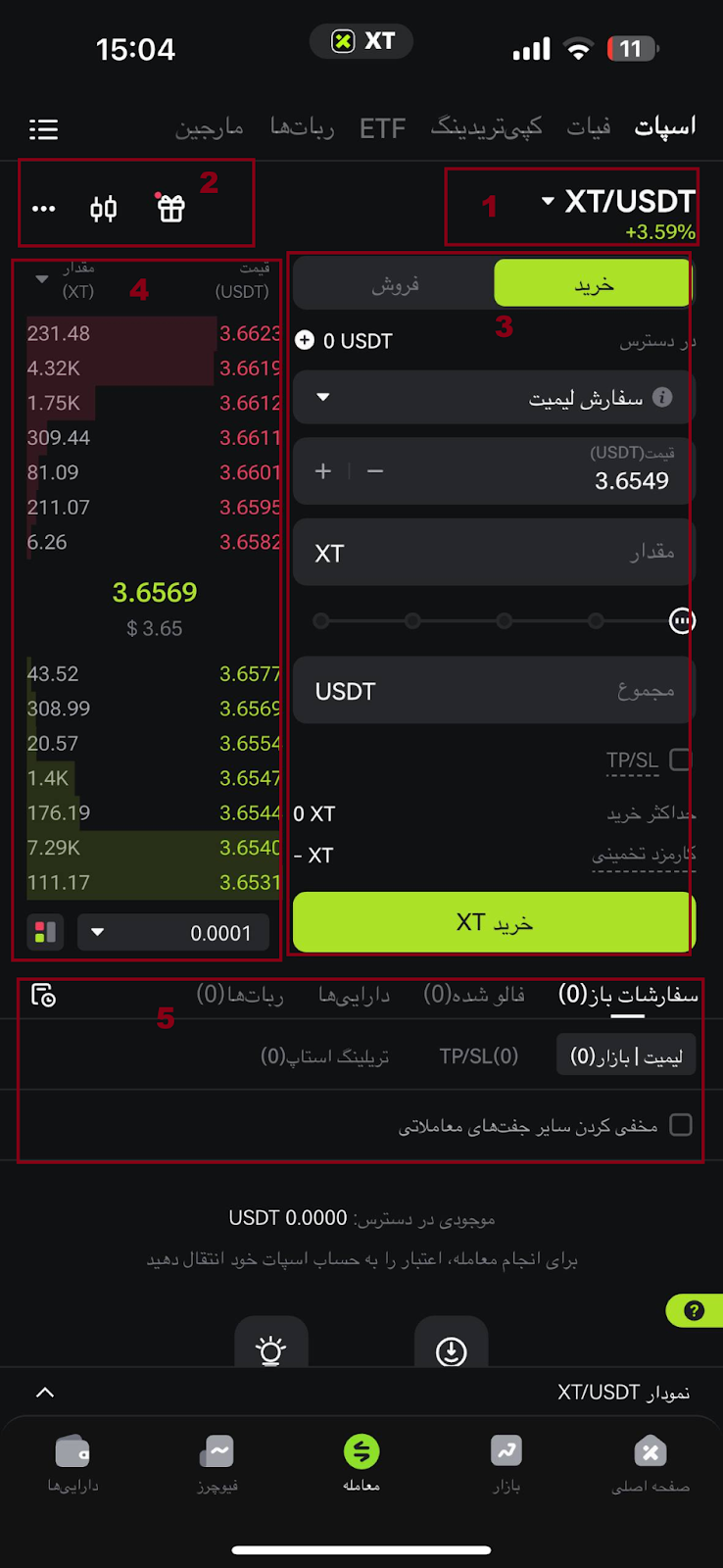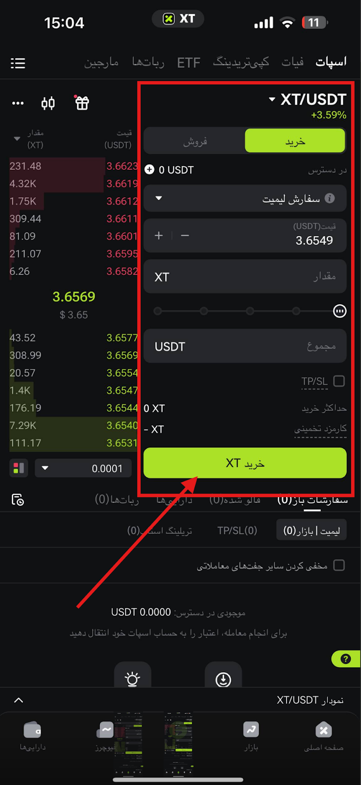 نحوه انجام معامله اسپات در اپلیکیشن XT
