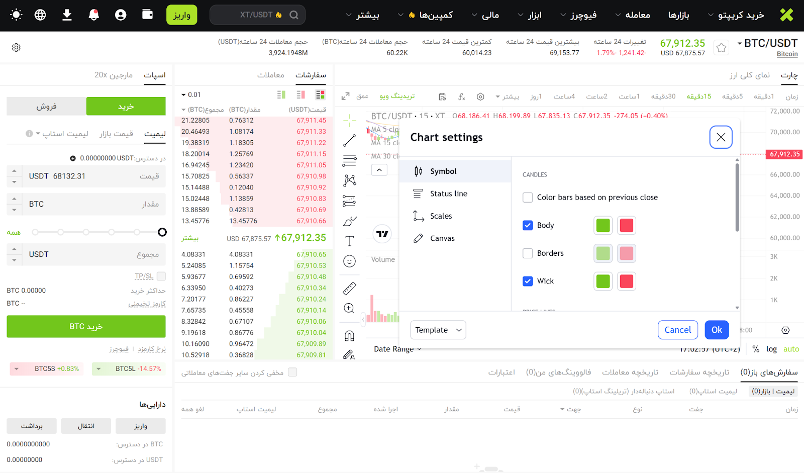 در پلتفرم معاملاتی XT، می توانید رنگ های نمودار کندل استیک و اندیکاتورهای تکنیکال را مطابق با سلیقه خود سفارشی سازی کنید تا تحلیل بهتری از بازار داشته باشید. این آموزش شما را گام به گام با مراحل تنظیمات آشنا می کند.