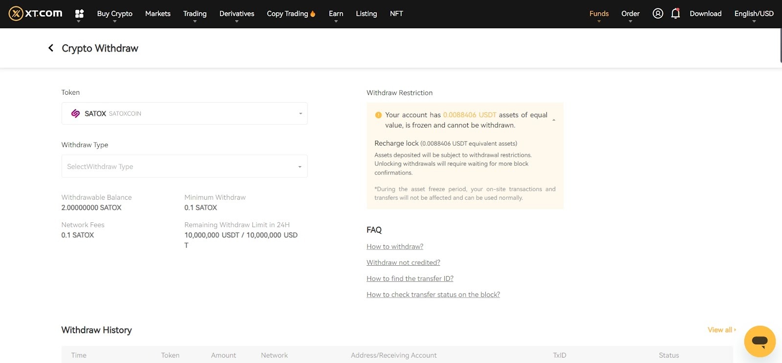 نکته: تا زمانی که واریزی ها به تعداد تأییدهای لازم برای آزادسازی برداشت نرسند، دارایی های معادل به صورت موقت مسدود باقی می مانند.
