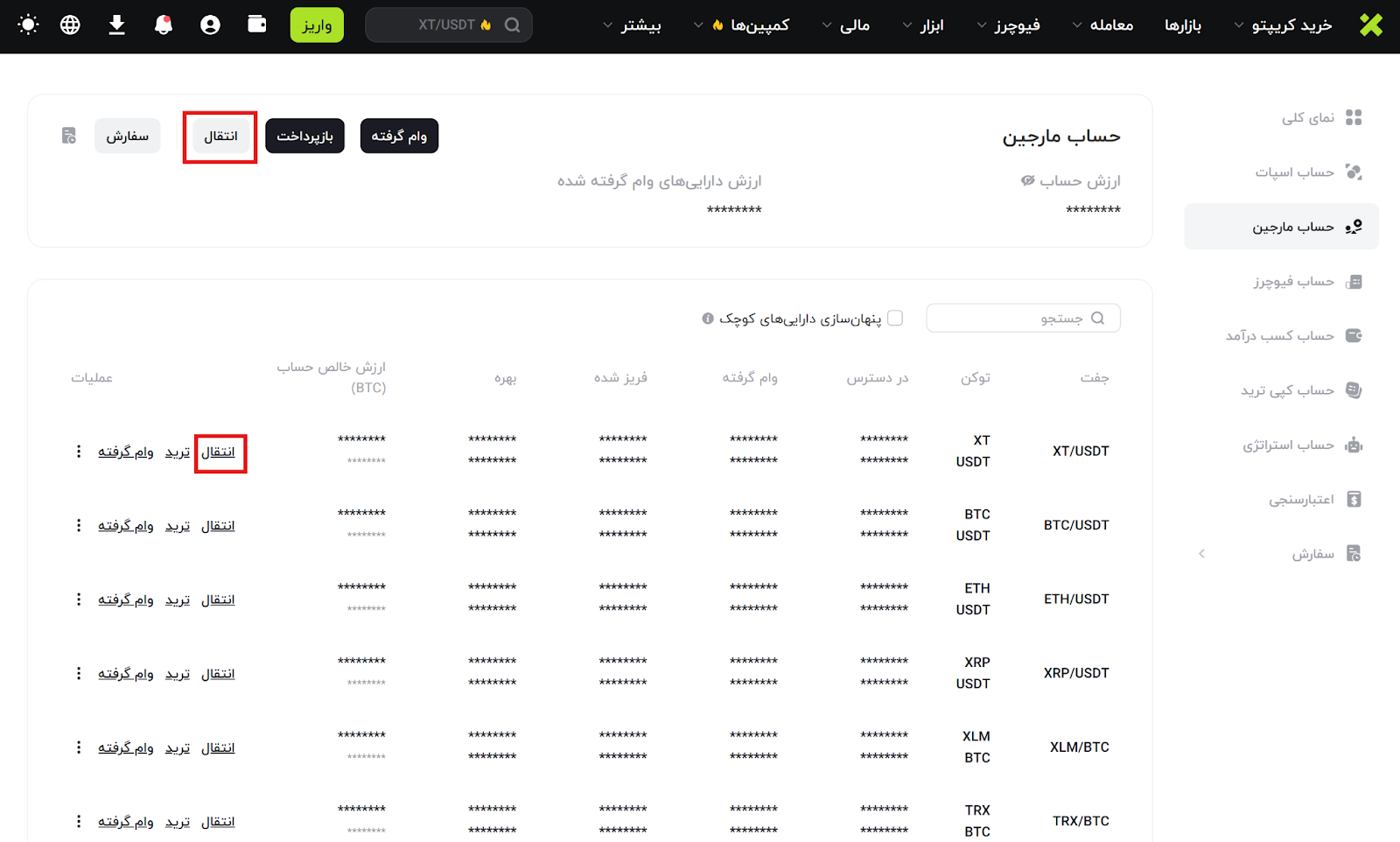 4. پس از تکمیل انتقال، می توانید موجودی به روزشده را در بخش حساب مارجین مشاهده کنید.