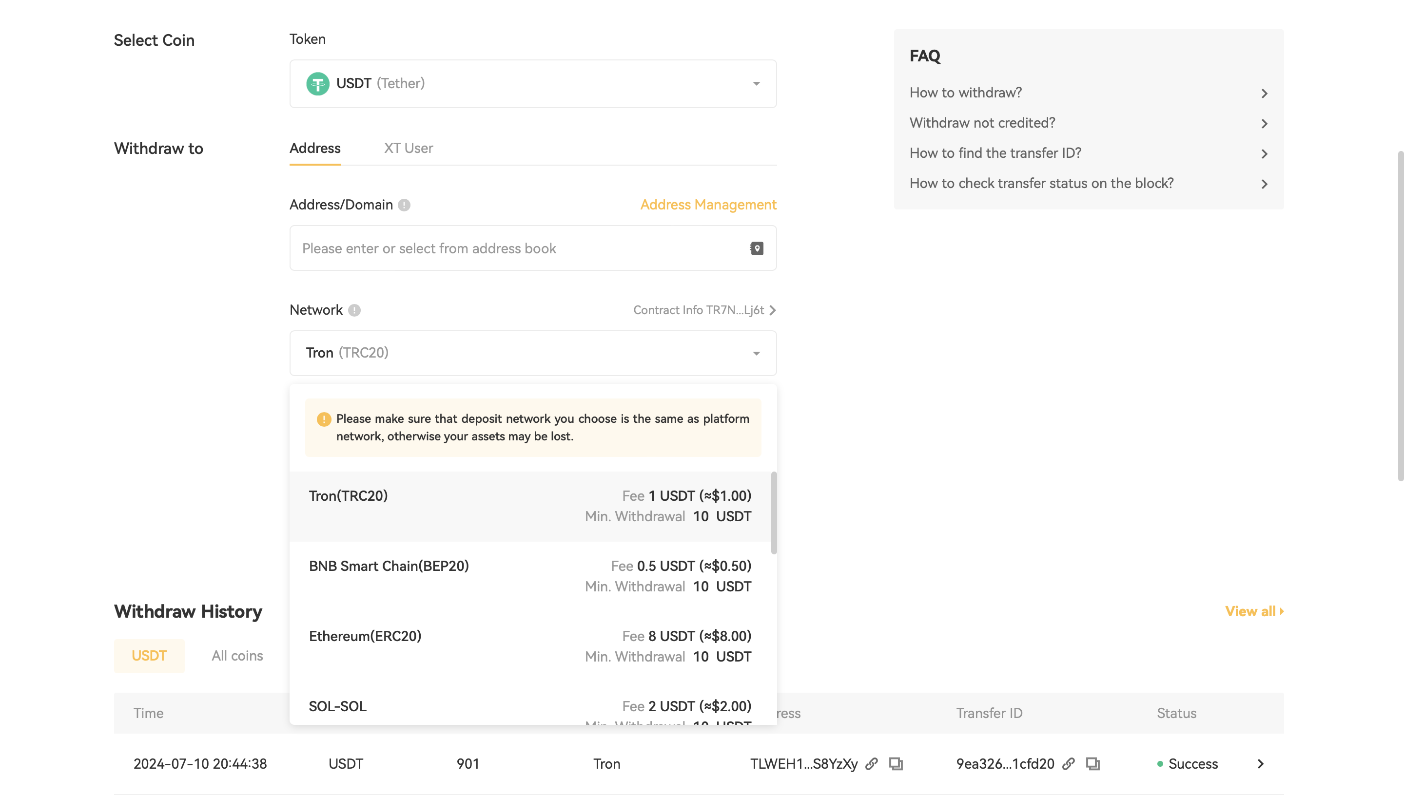 Если вы держите криптовалюту на бирже XT, вы можете перевести ее на другую платформу или кошелек. Используя USDT в качестве примера, мы проведем вас через процесс вывода криптовалюты с вашего аккаунта XT на внешнюю платформу или кошелек.