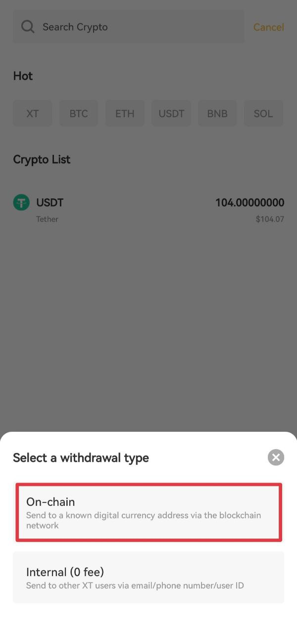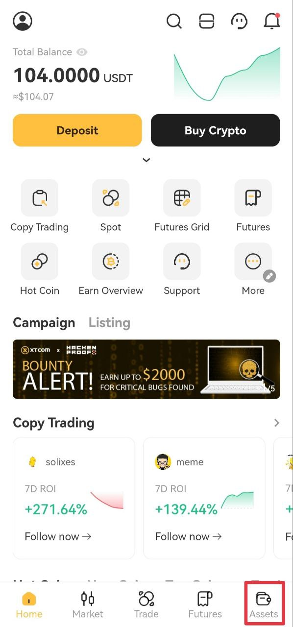 Как вывести криптовалюту в приложении XT