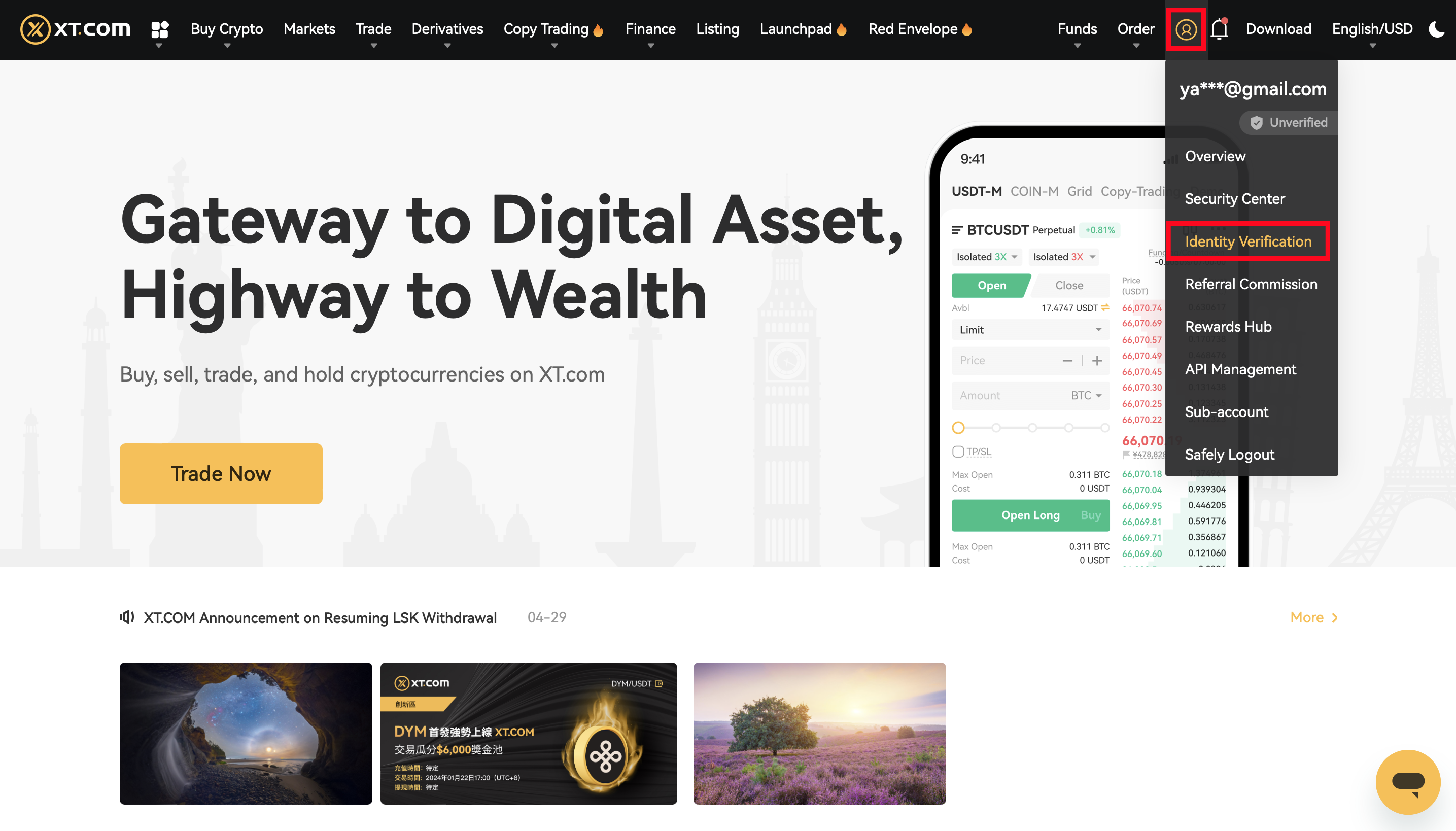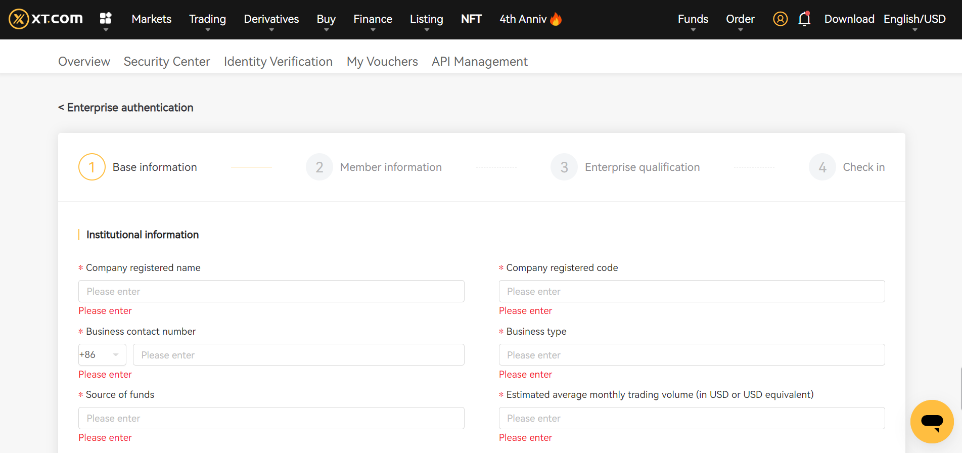 Шаг 1: Перейдите на сайт https://www.xt.com/ и войдите в свой аккаунт. Перейдите в "Личный кабинет" и нажмите на "Верификация личности".