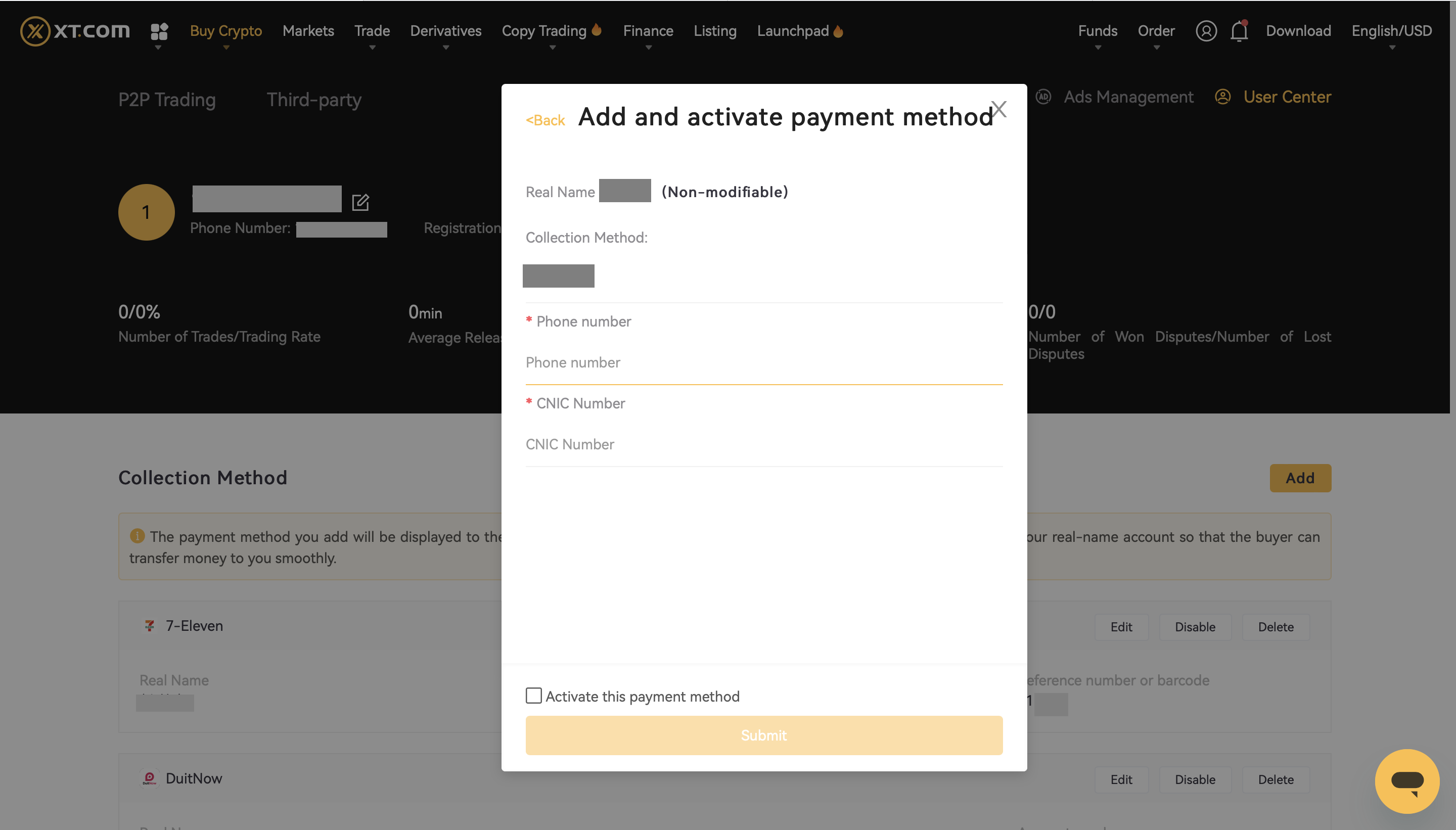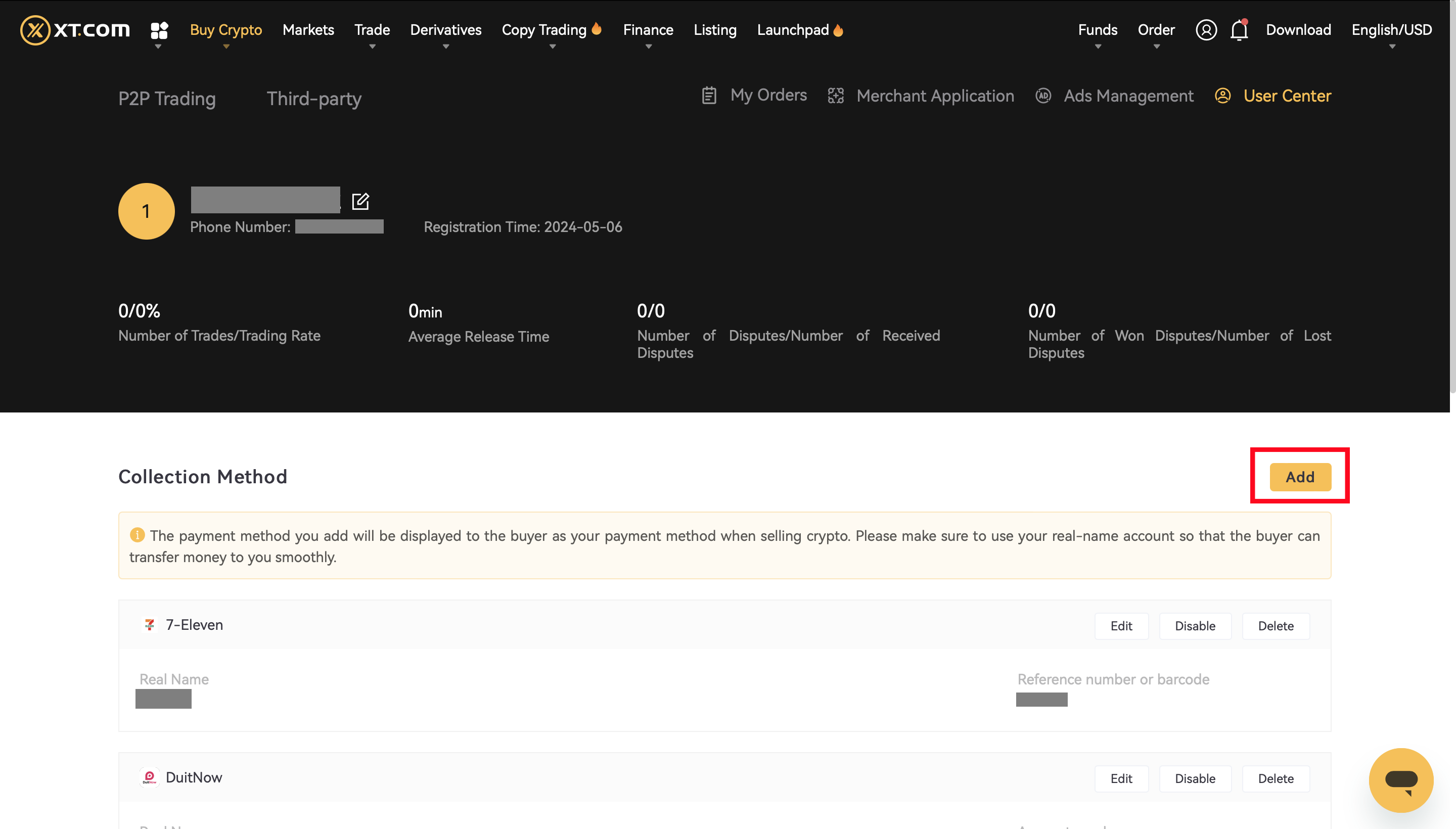 Cách thêm phương thức thanh toán mới trong giao dịch C2C