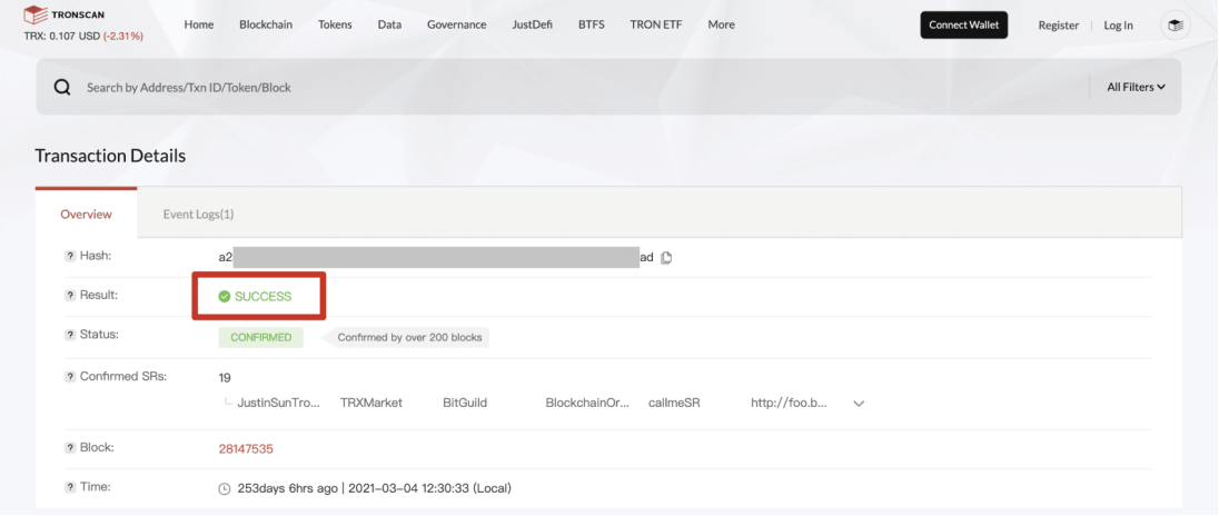 3. Kiểm tra trạng thái giao dịch trên mạng Tron (TRC20)